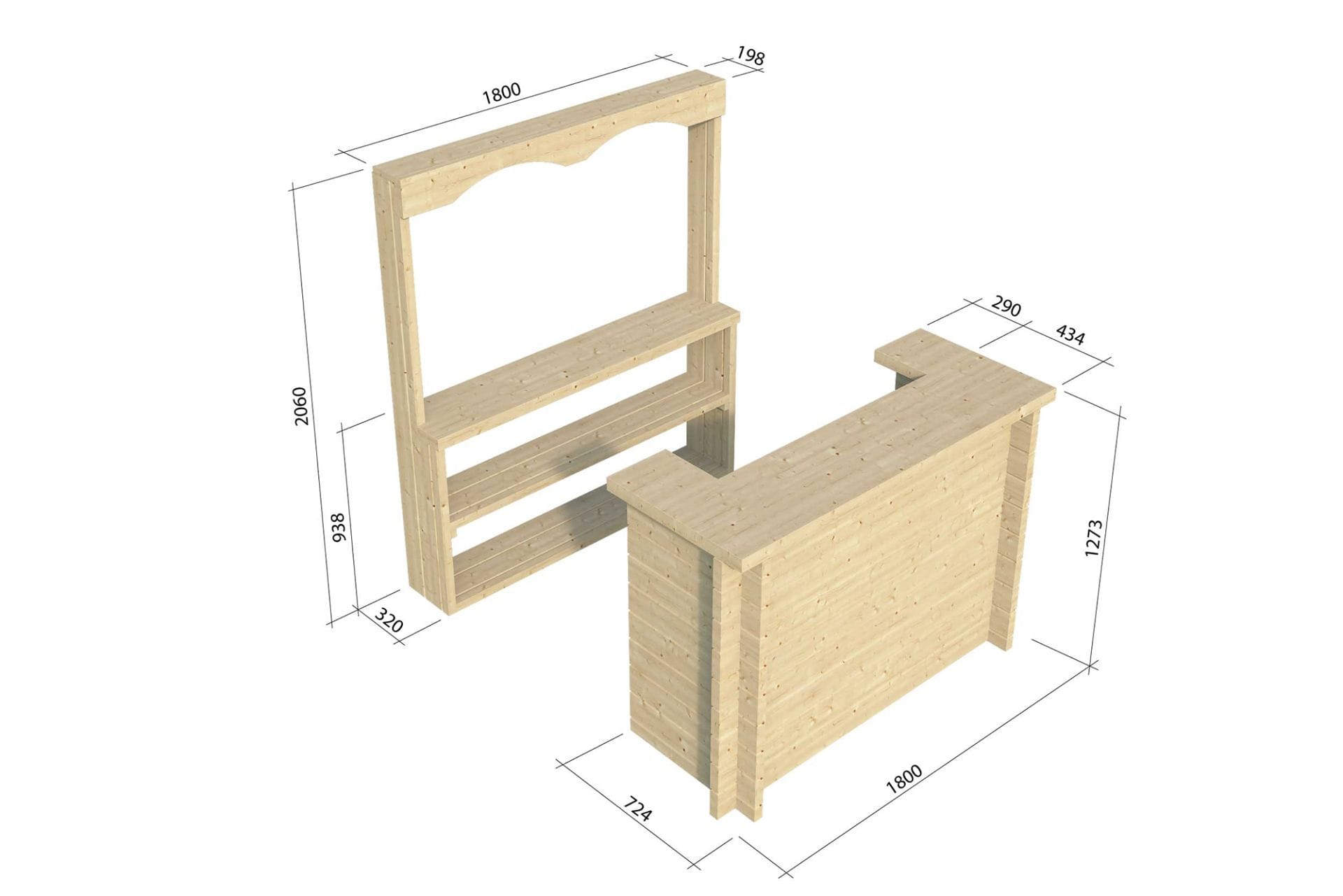 • Hoogte achterwand: 206 cm