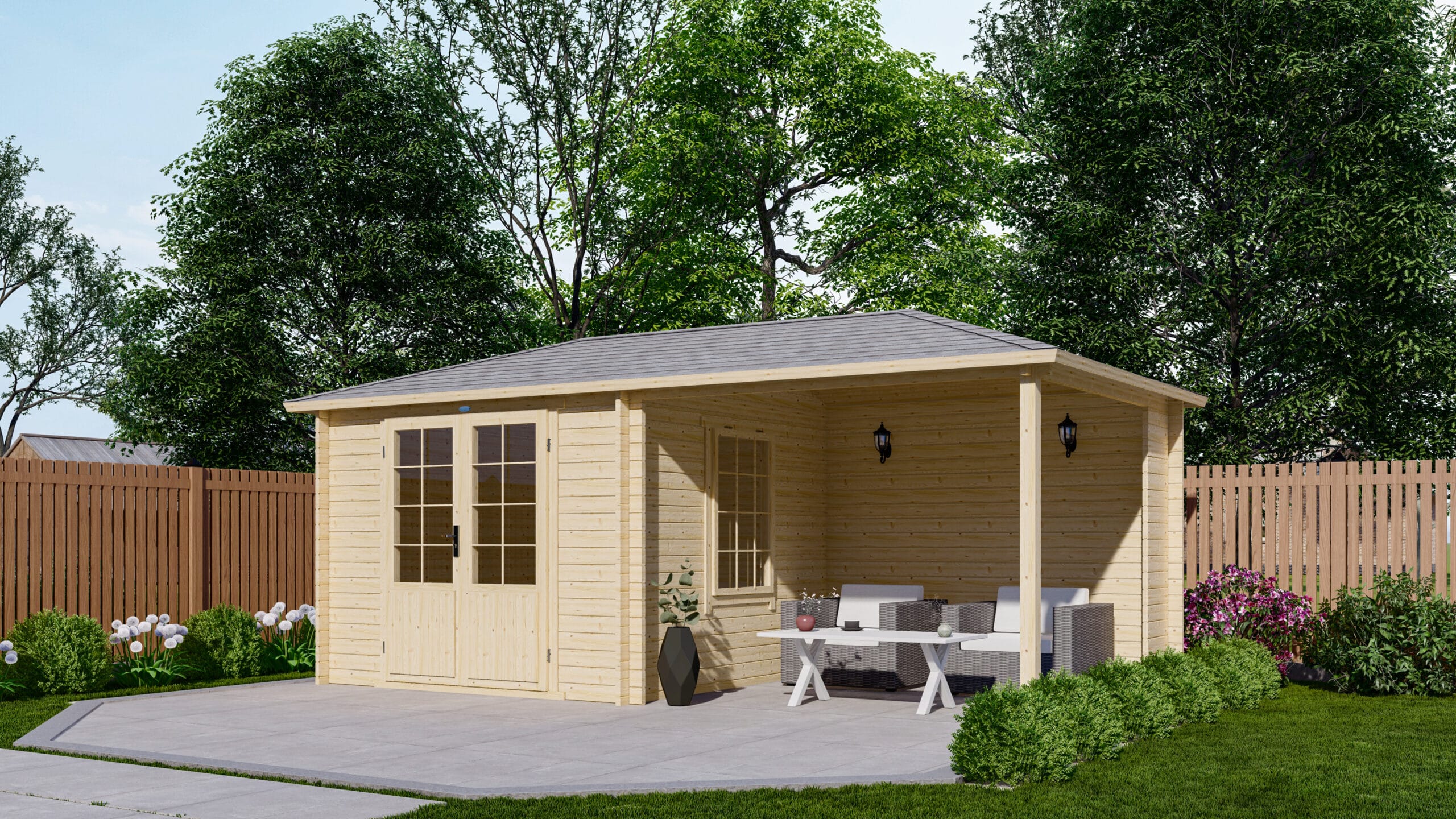Blokhut 3030Z Interflex 576x300x262cm Met Zijluifel 272 cm Wanddikte 40 mm