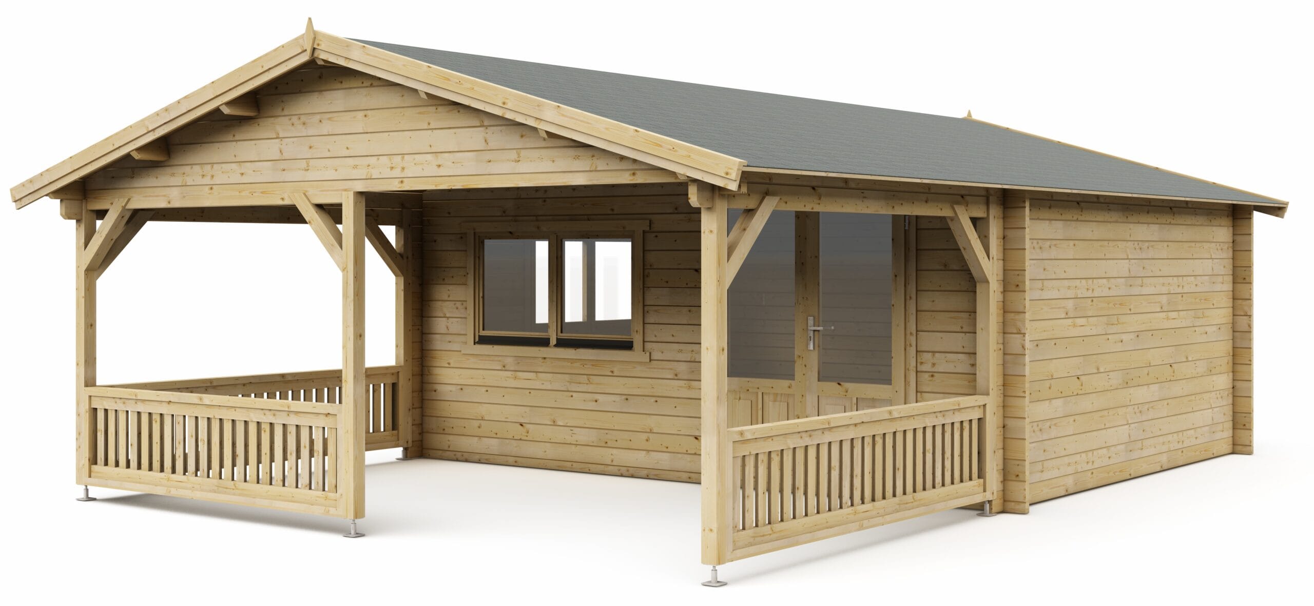 Blokhut 5×4+3 Interflex 540x745x280cm met Veranda 300 cm Wanddikte 50 mmBlokhut 5×4+3 Interflex 540x745x280cm met Veranda 300 cm Wanddikte 50 mm