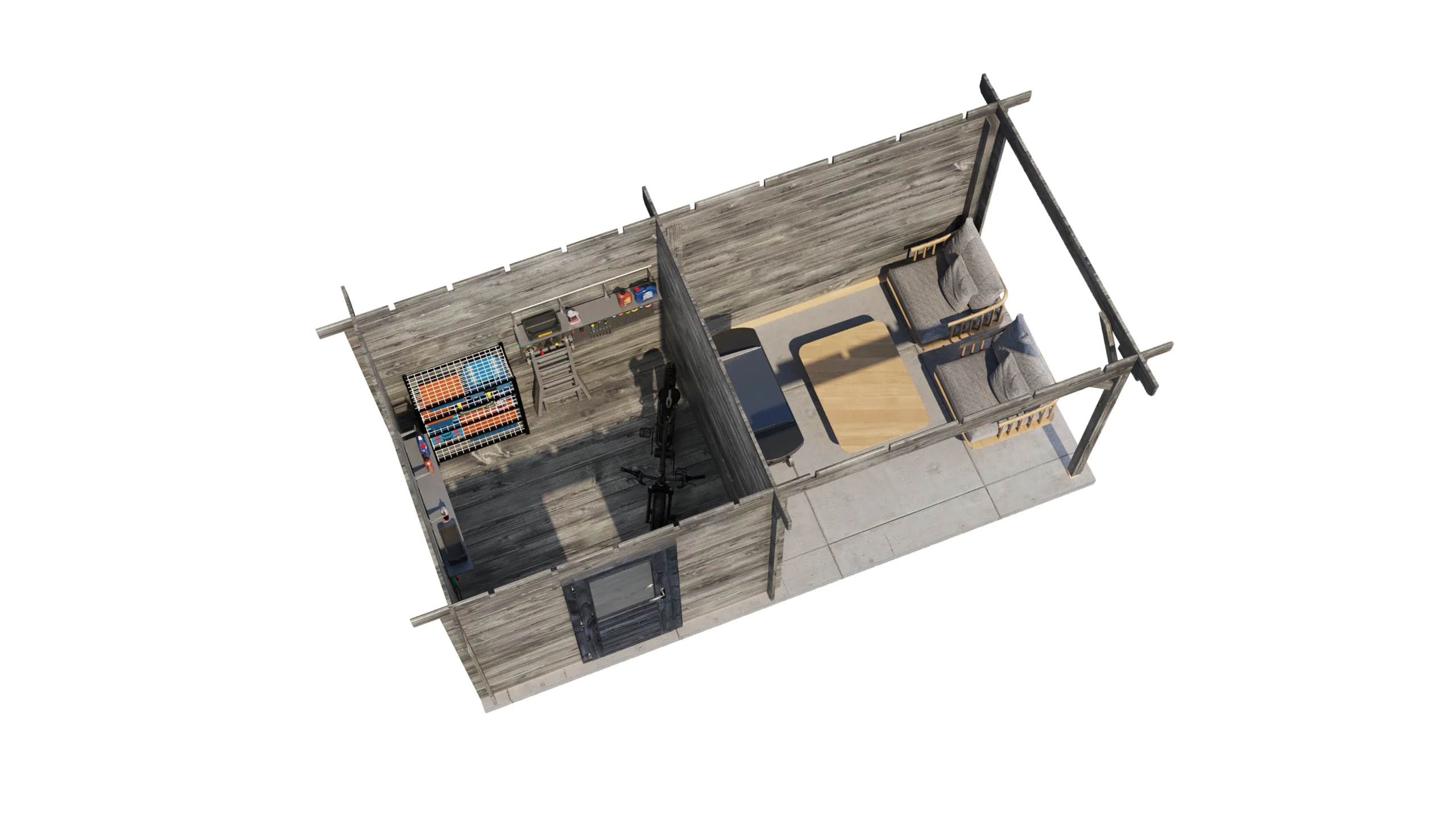 Afmetingen blokhut: 250×250 cm