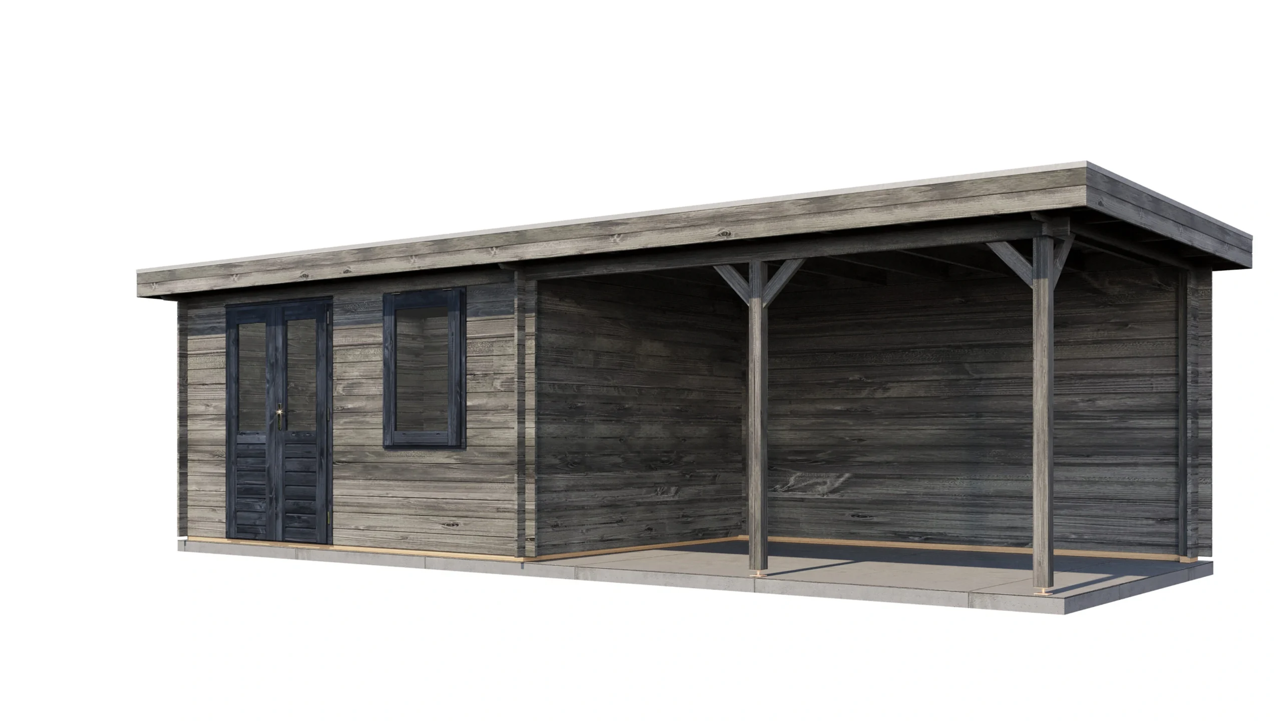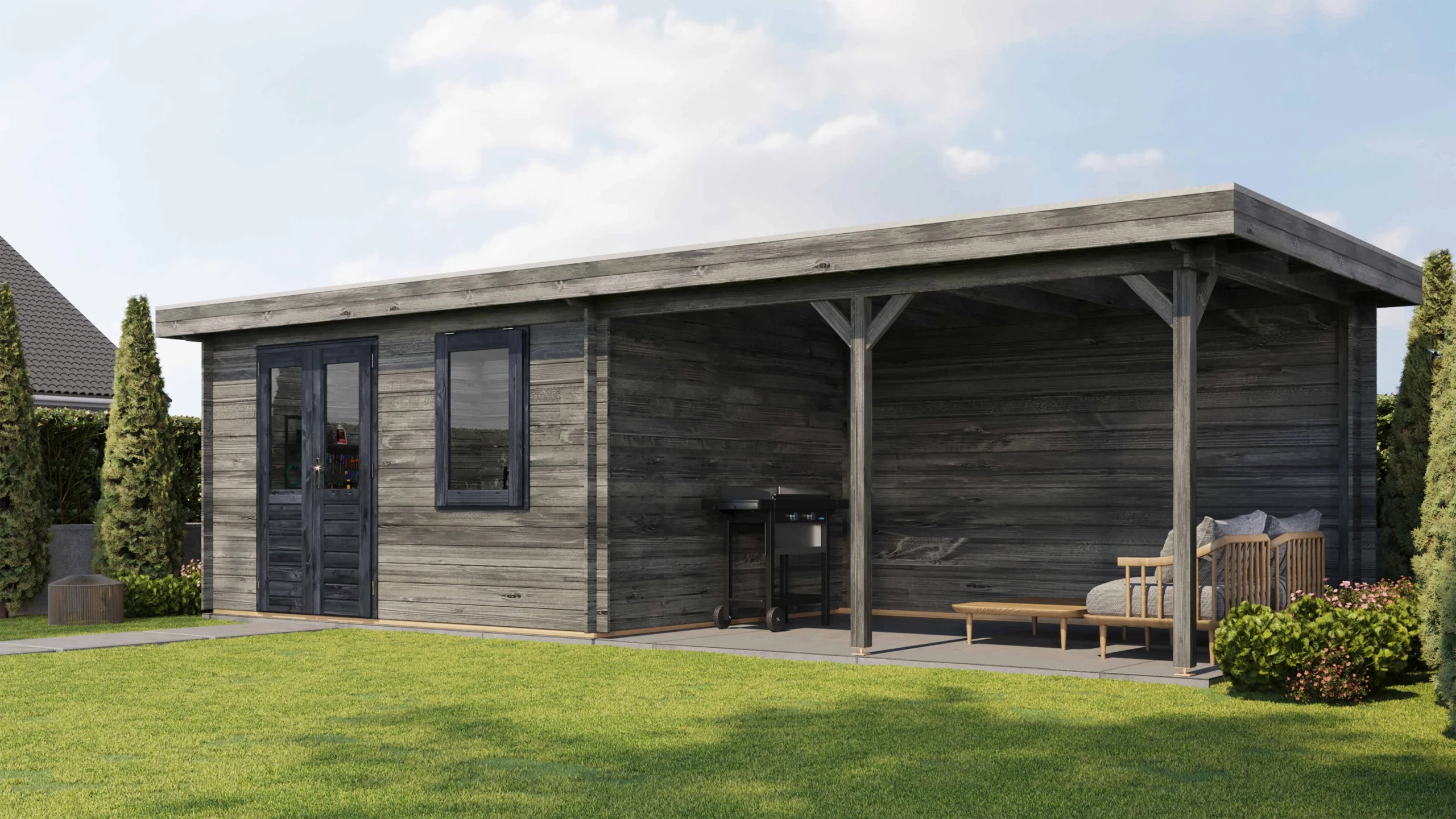 Blokhut met overkapping Huissen 400×300 cm + 400 cm – OnbehandeldBlokhut met overkapping Huissen 400×300 cm + 400 cm – Onbehandeld