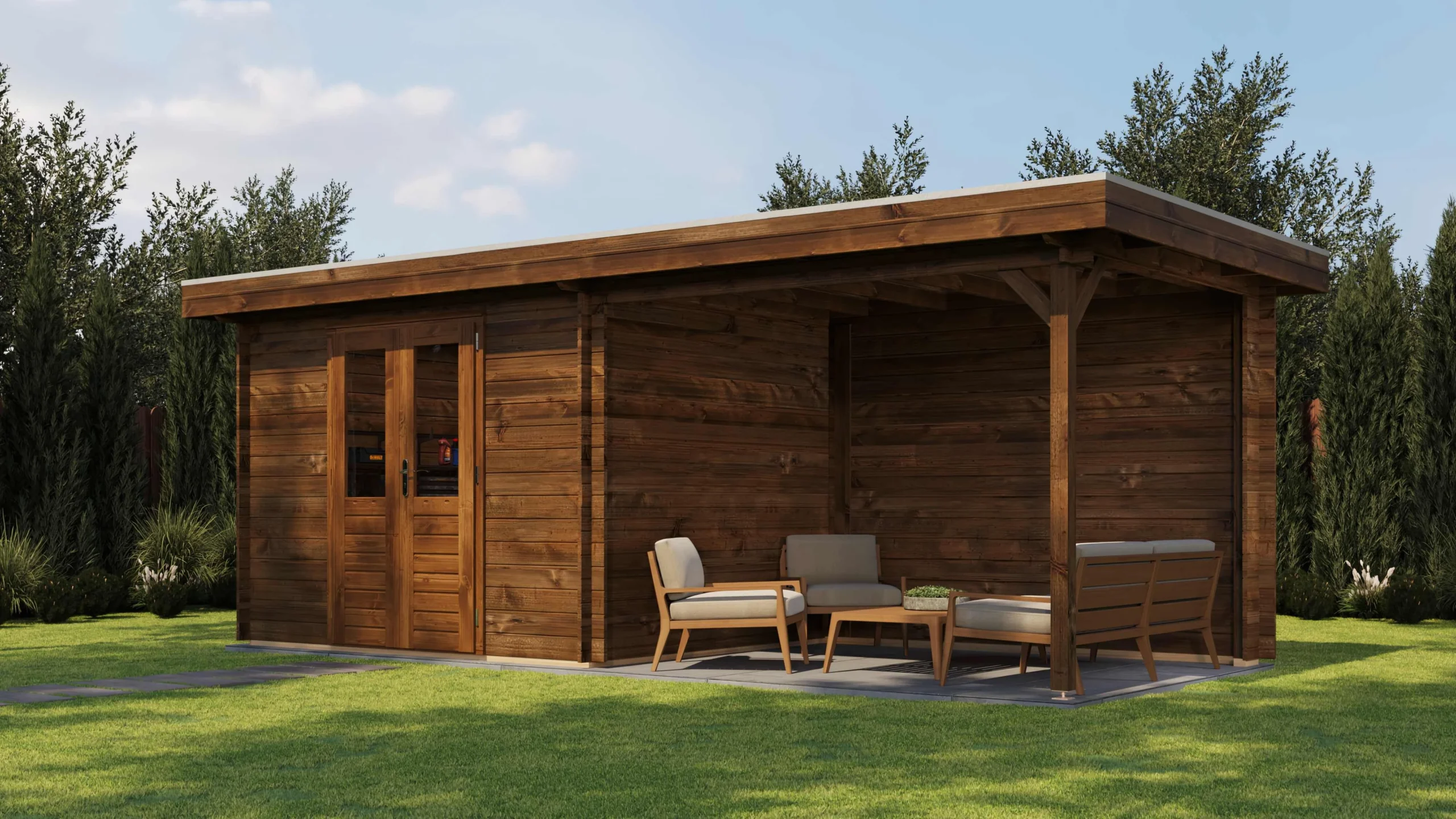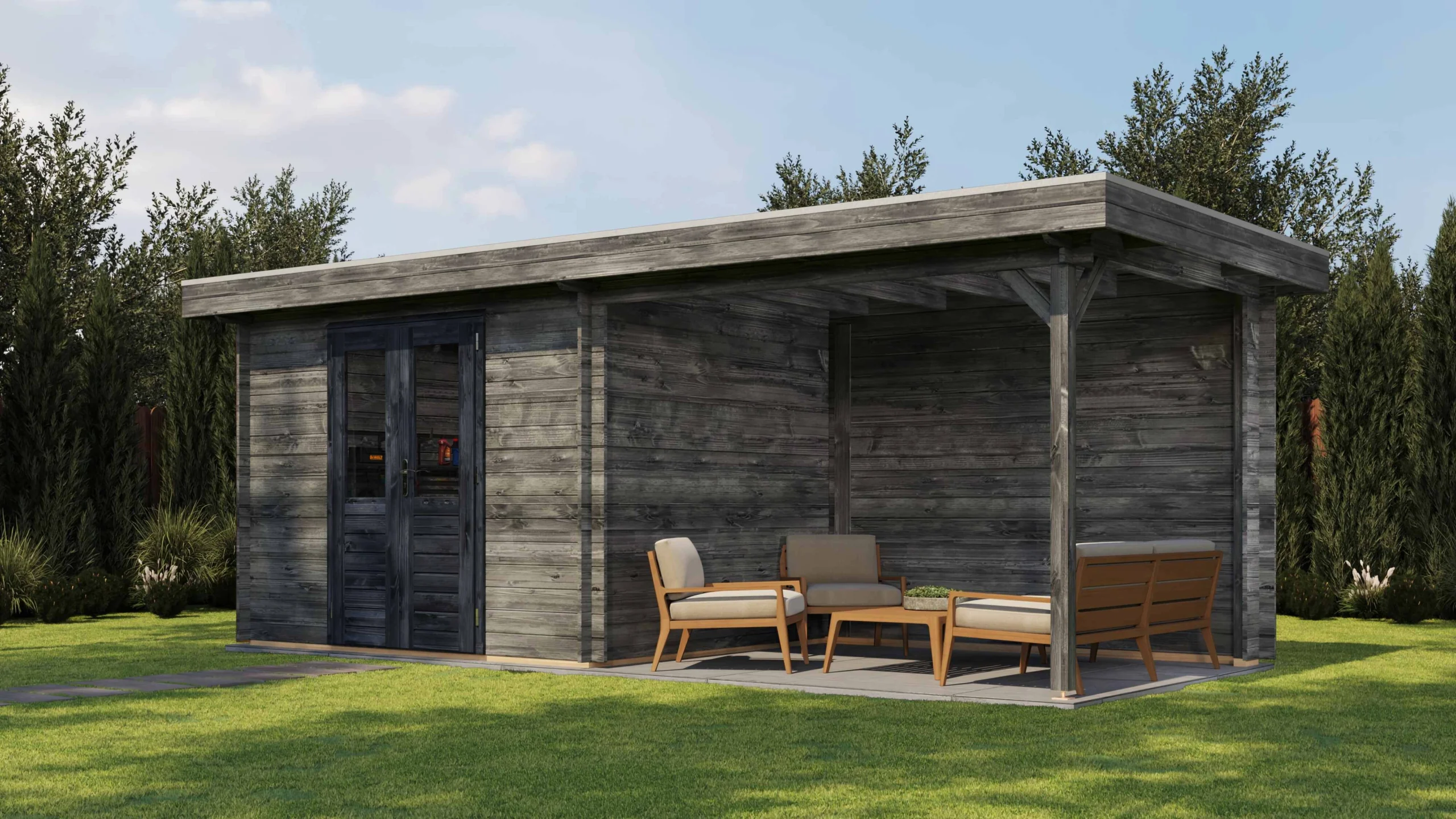 Blokhut met overkapping Wageningen 300×250 cm + 300 cm – OnbehandeldBlokhut met overkapping Wageningen 300×250 cm + 300 cm – Onbehandeld