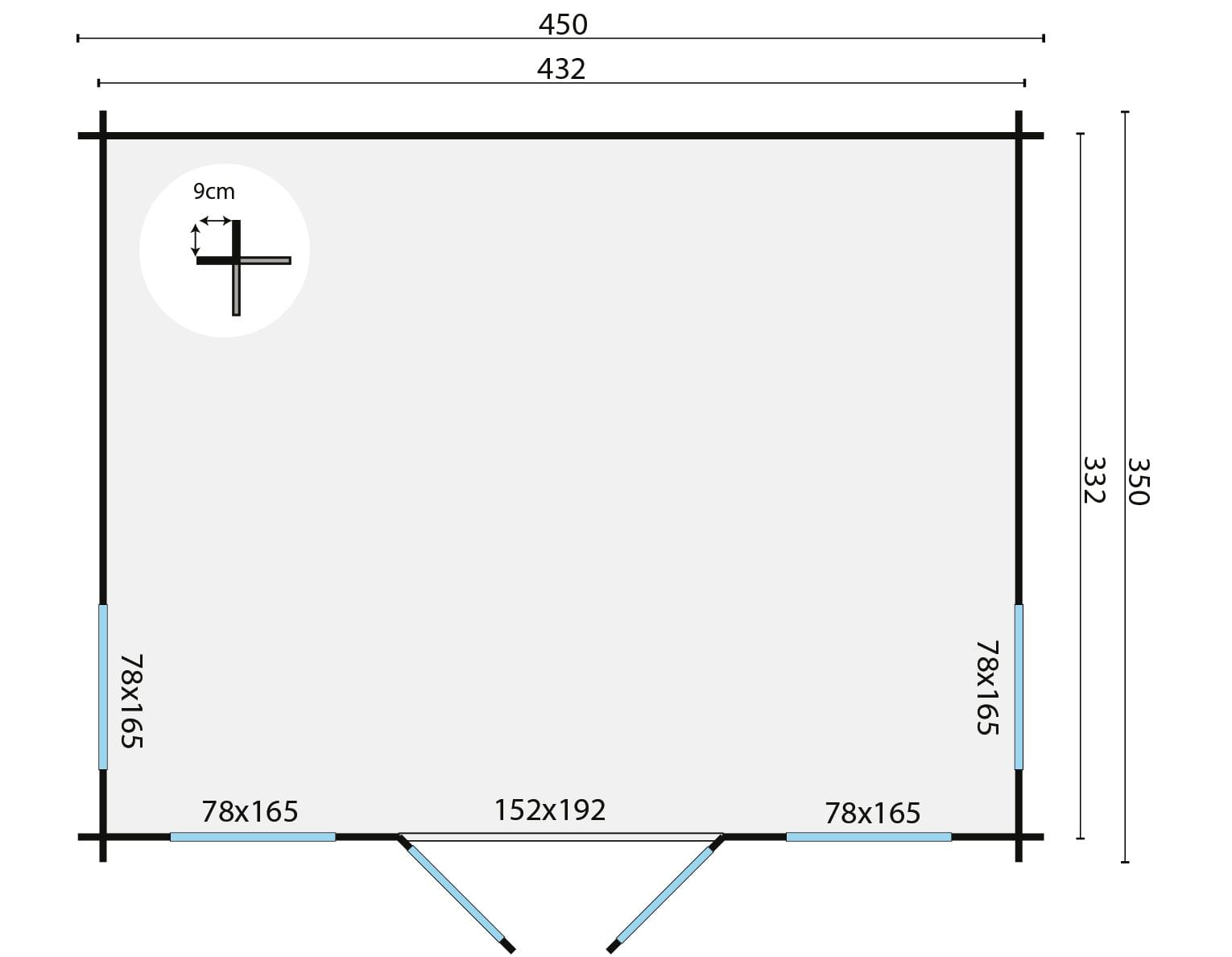 Fundering: 432 x 332 cm