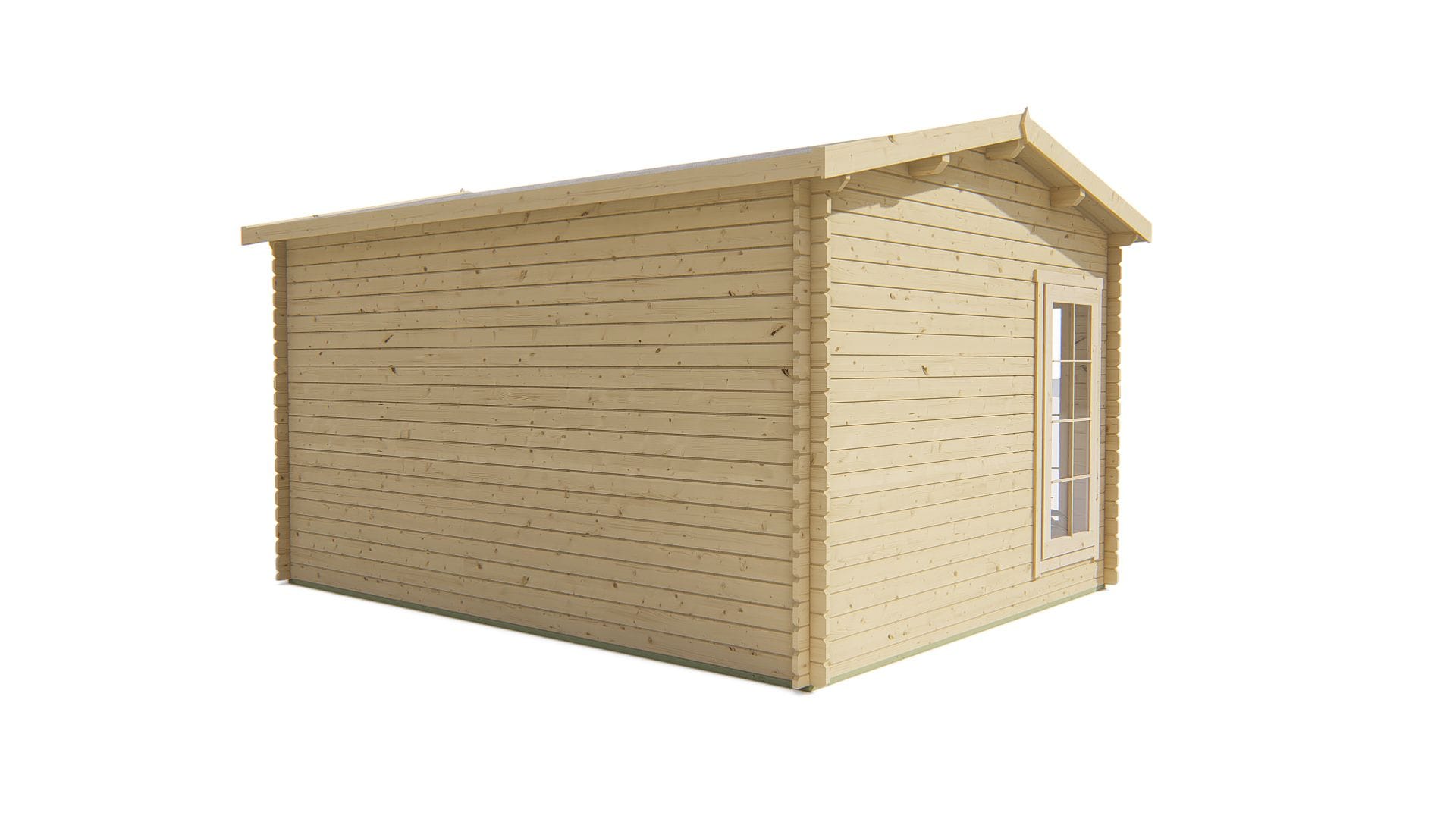 Deze compacte maar stijlvolle houten blokhut biedt een praktische binnenruimte van 14,3 m², ideaal als tuinkantoor, hobbyruimte of opslag. Het klassieke zadeldak geeft een traditionele uitstraling, terwijl de vier te openen ramen zorgen voor veel natuurlijk licht en ventilatie.