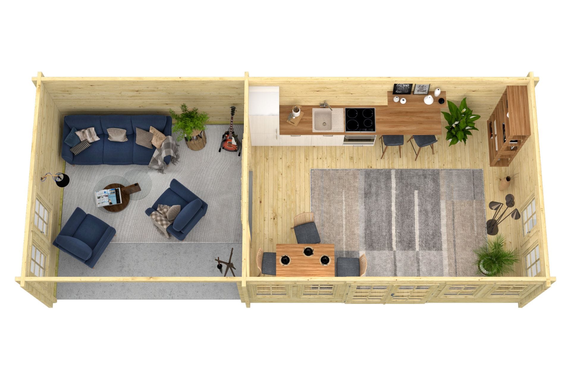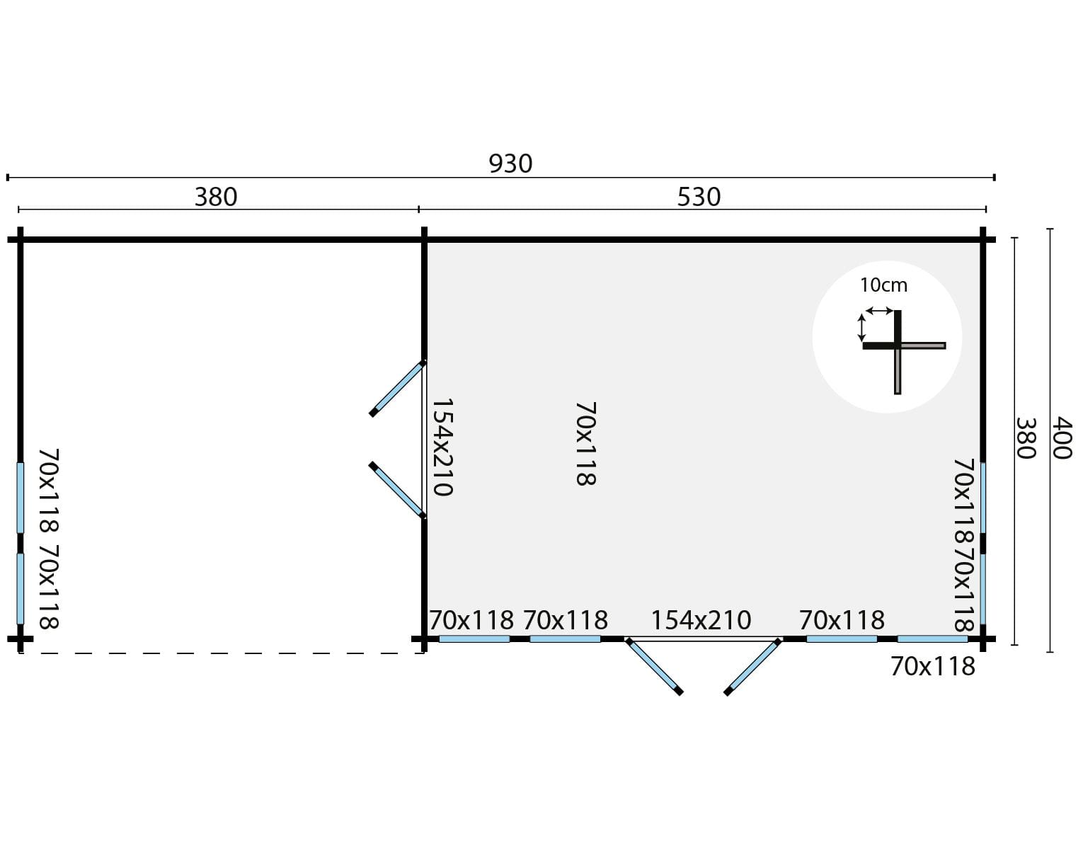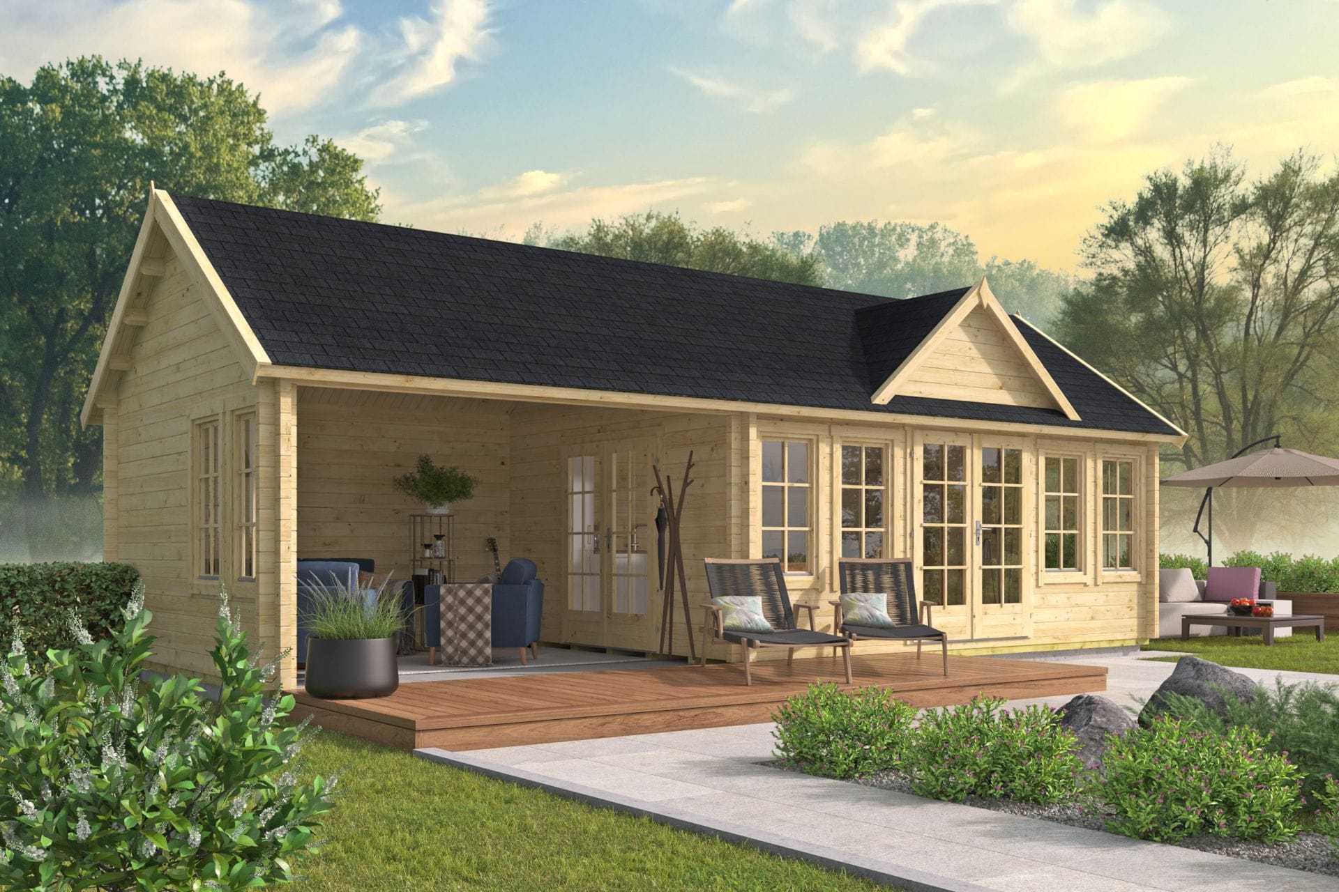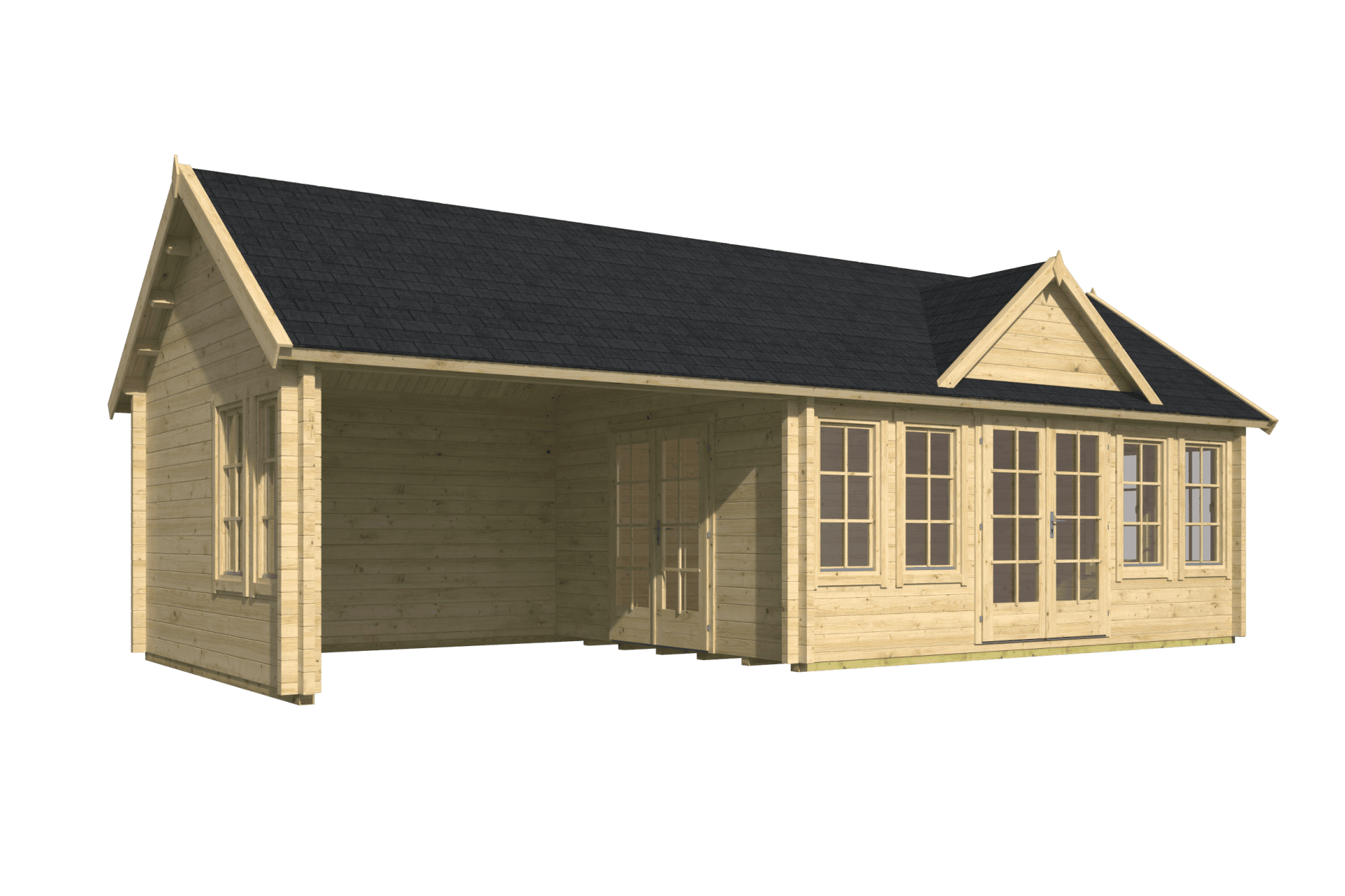 Zoekt u een stijlvol, ruim en duurzaam tuinverblijf met extra overdekte buitenruimte? Dit robuuste houten tuinverblijf met zadeldak combineert een royale binnenruimte met een zijwaartse overkapping van 13,6 m². Ideaal voor wie een comfortabele tuinkamer zoekt, met ruimte voor loungen, hobby’s of opslag.