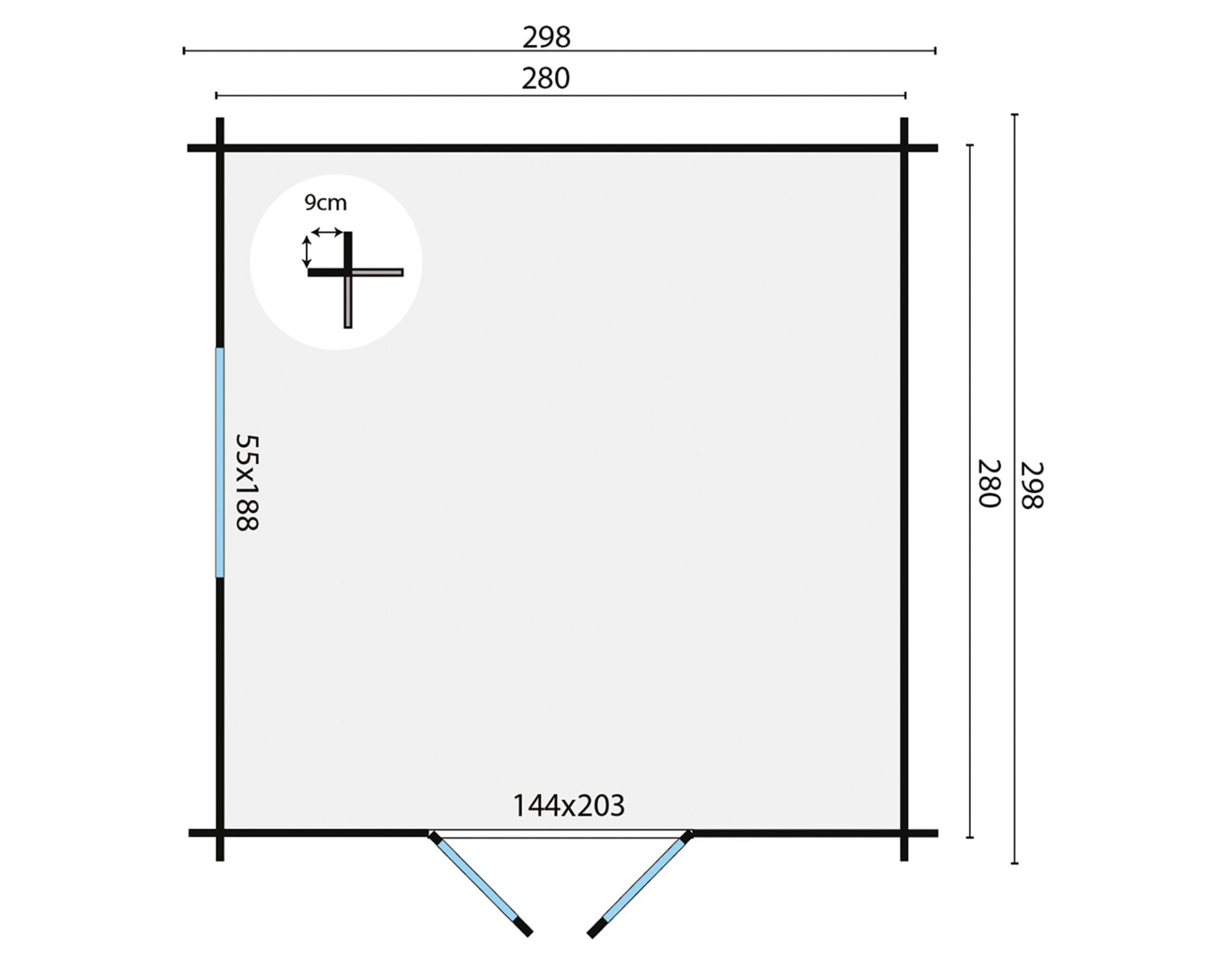 Deze ruime, vierkante blokhut met strak plat dak is een echte allrounder in je tuin. Dankzij het geschaafde, gedroogde vurenhout en de degelijke 28 mm wanddikte is hij zowel stevig als stijlvol. De dubbele deur met enkel glas en het vaste raam zorgen voor een lichte en toegankelijke ruimte. Extra handig: deuren en ramen zijn naar wens links of rechts te plaatsen.