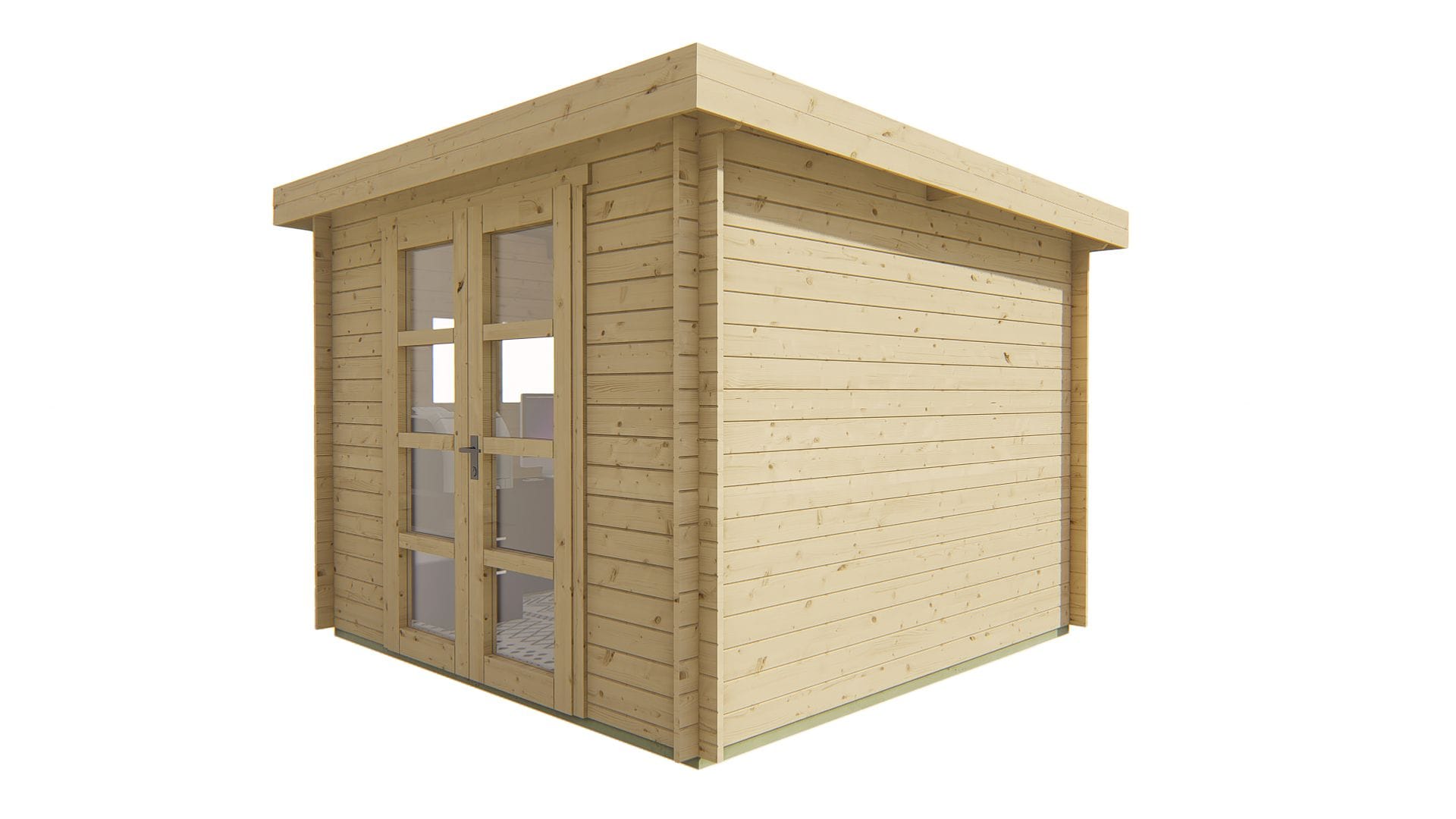 Een veelzijdige blokhut met een moderne uitstraling, die dankzij de flexibele plaatsing van ramen en deuren helemaal naar wens is in te delen.