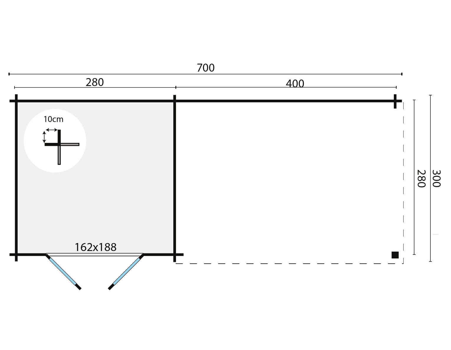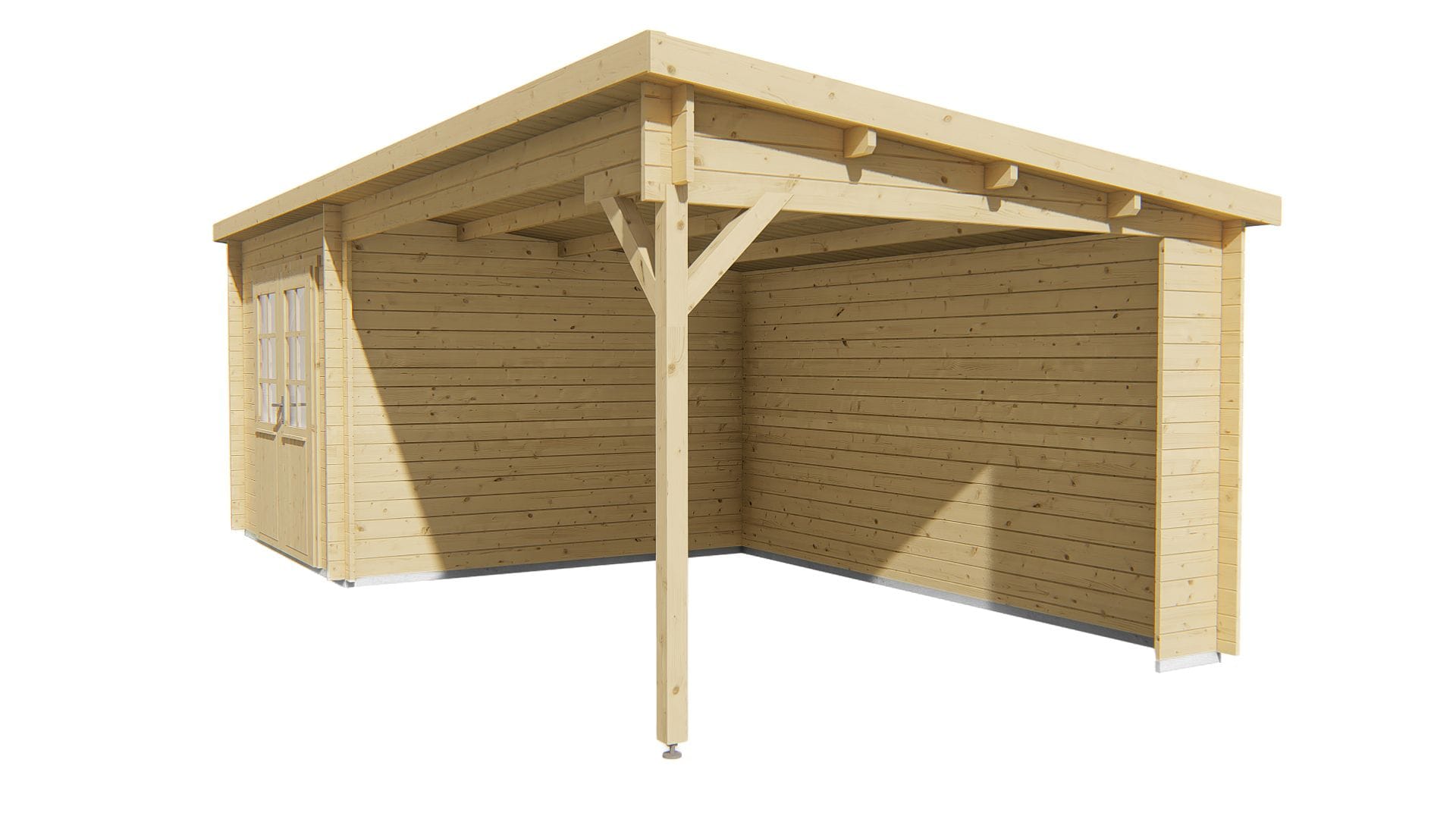 Deze ruime en veelzijdige houten tuinkamer is de perfecte combinatie van een afgesloten binnenruimte en een royale zijkap, ideaal voor gebruik als hobbyruimte, thuiskantoor of loungespot in de tuin. Vervaardigd uit geschaafd, gedroogd vurenhout en voorzien van enkel glas in de dubbele deur, straalt deze constructie kwaliteit en rustieke charme uit.