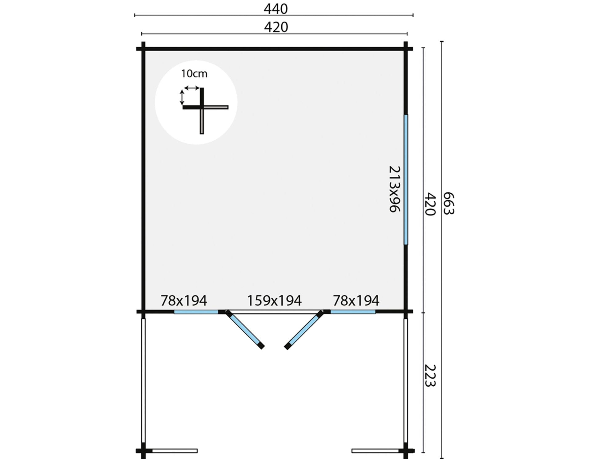 Blokhut – Tuinhuis Ipswich | 58 mm | vuren onbehandeldBlokhut – Tuinhuis Ipswich | 58 mm | vuren onbehandeld
