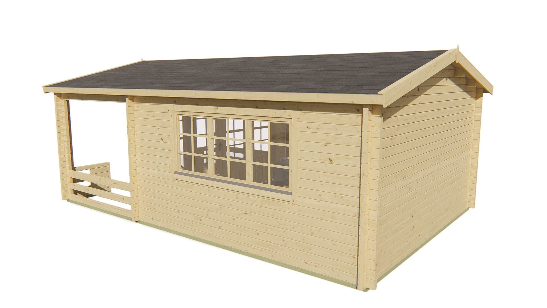 Dit ruime houten tuinhuis met zadeldak en diepe overkapping aan de voorzijde biedt de perfecte balans tussen stijl en functionaliteit. Met een royale binnenruimte van 17,6 m² en een overkapping van 9,2 m² is dit model ideaal als tuinkamer, opslagruimte of overdekte loungeplek.