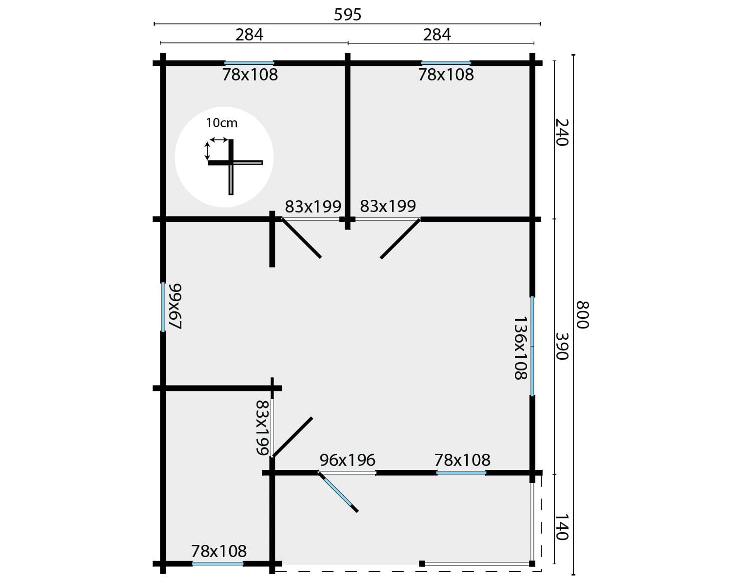 Blokhut – Tuinhuis Kay | 70 mm | vuren onbehandeldBlokhut – Tuinhuis Kay | 70 mm | vuren onbehandeld