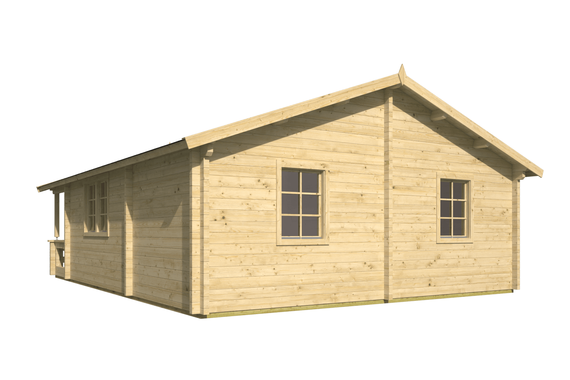 De blokhut is vervaardigd uit gedroogd, geschaafd vurenhout met een wanddikte van 70 mm, en beschikt over 27 mm dikke dakplanken die uitstekende isolerende eigenschappen bieden.