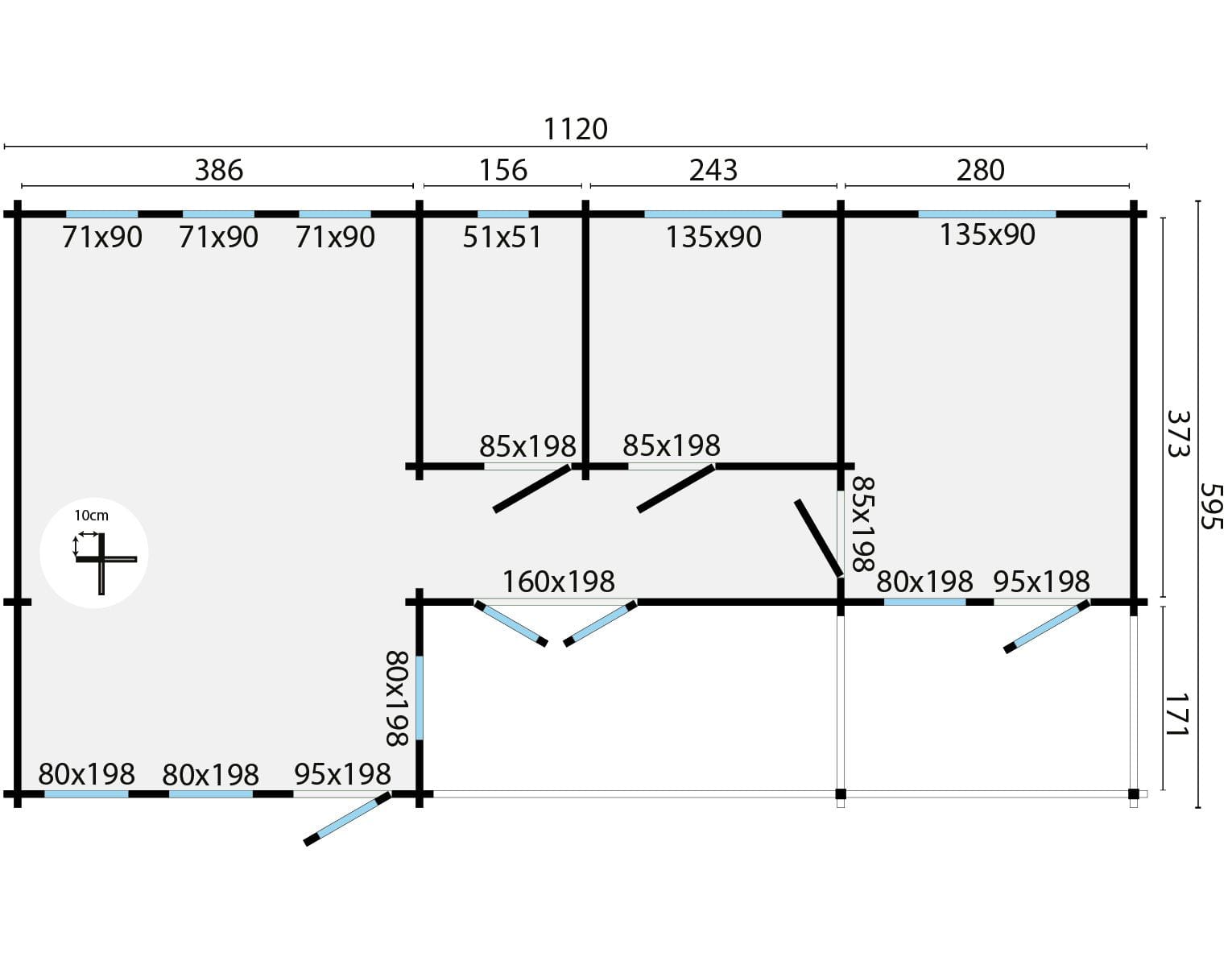 Buitenmaat: 1120 x 595 cm