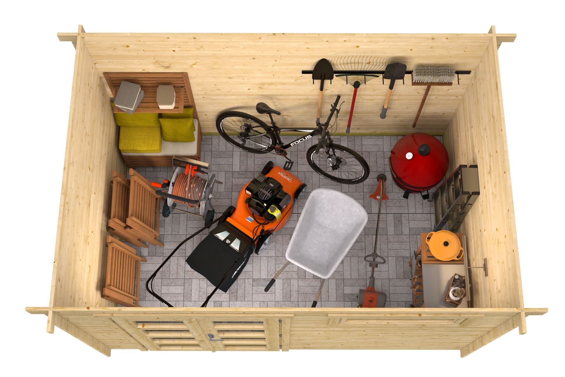Gemaakt van geschaafd en gedroogd vurenhout, biedt deze blokhut een duurzame en stevige constructie. Dankzij de flexibele opbouwvariant kunnen ramen en deuren zowel links als rechts geplaatst worden – handig voor iedere tuininrichting.
