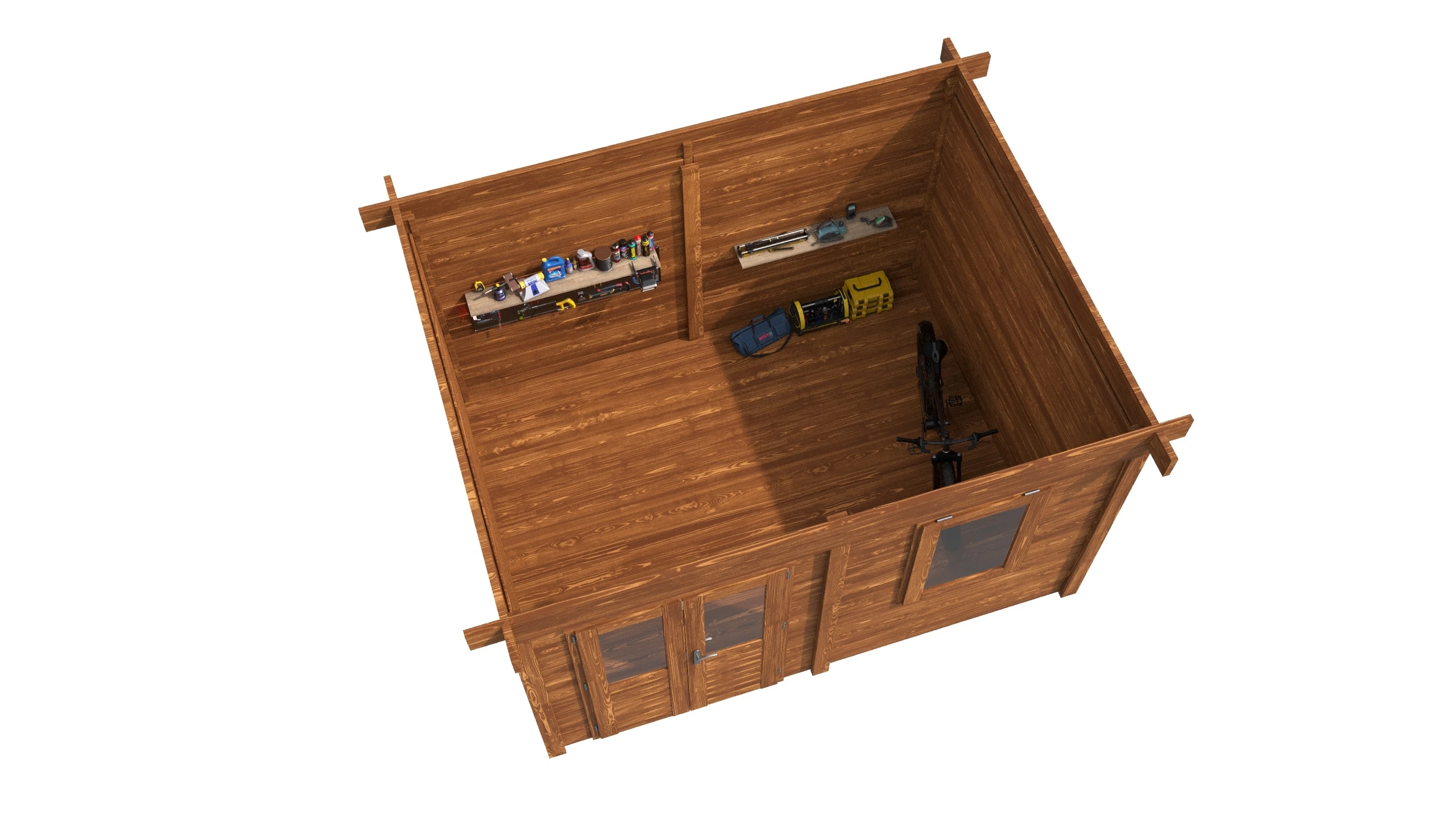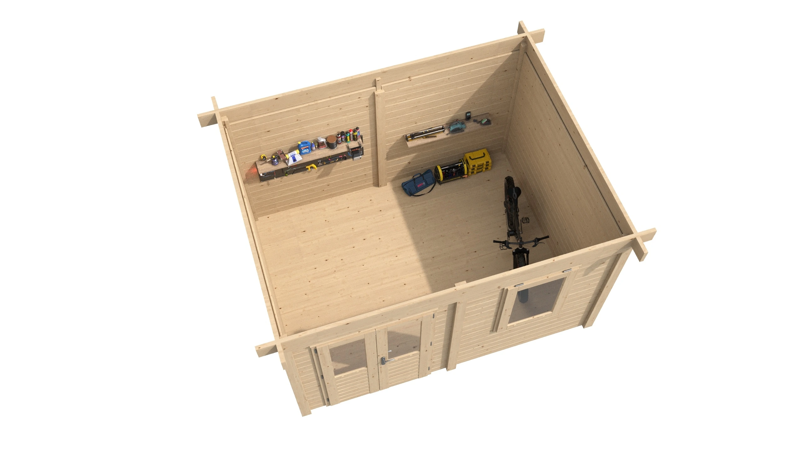 Compleet geleverd met dubbelglas, deur en raam