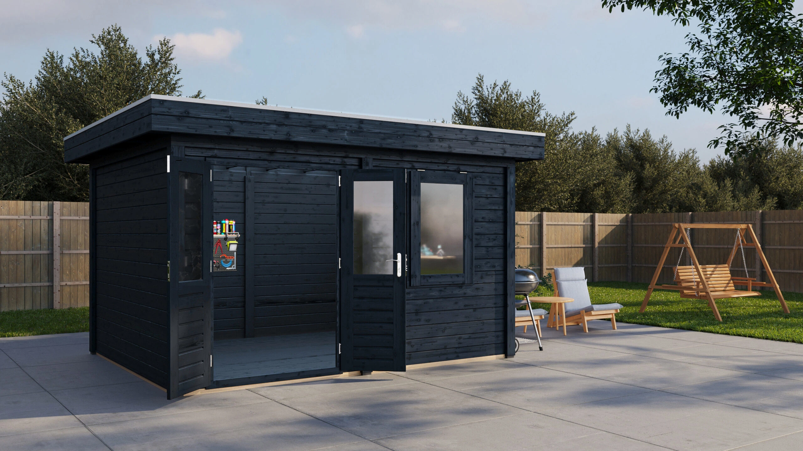 Modern Tuinhuis Bodegraven 388×300 cm – Platdak – 28 mm – Onbehandeld – Exclusief EPDMModern Tuinhuis Bodegraven 388×300 cm – Platdak – 28 mm – Onbehandeld – Exclusief EPDM