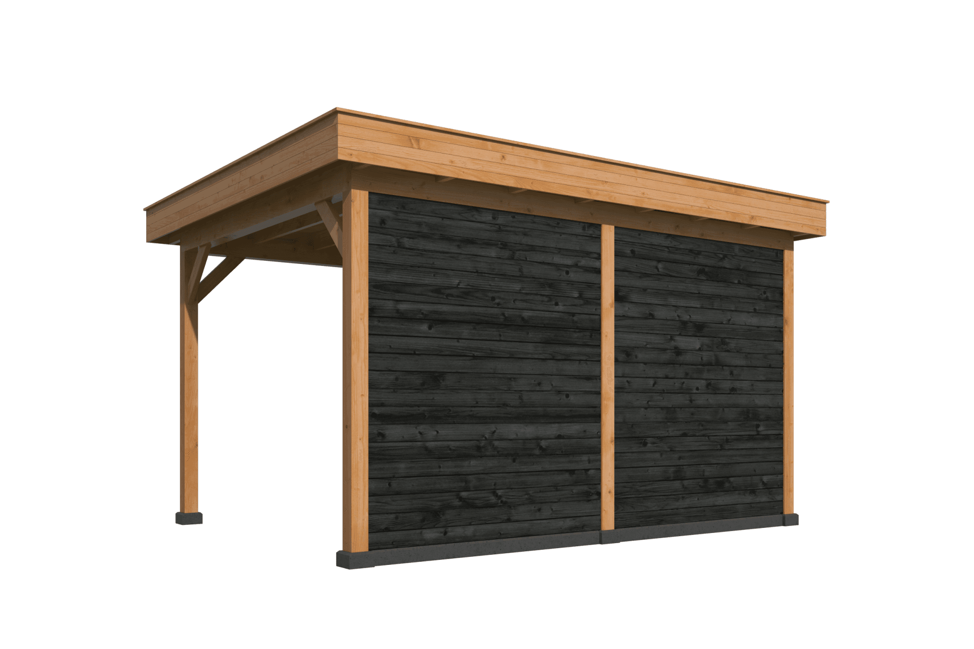 Deze overkapping is compact maar compleet – ideaal als luxe berging, overdekte zitplek of moderne tuinkamer. Met zijn zwarte afwerking en natuurlijke houtstructuur is hij een echte eyecatcher in elke tuin.