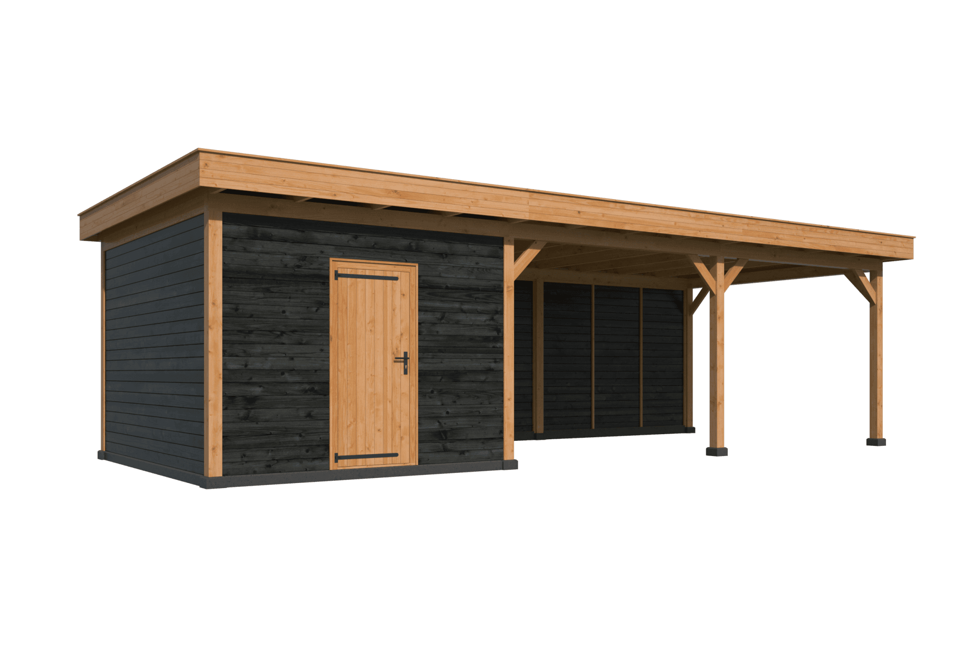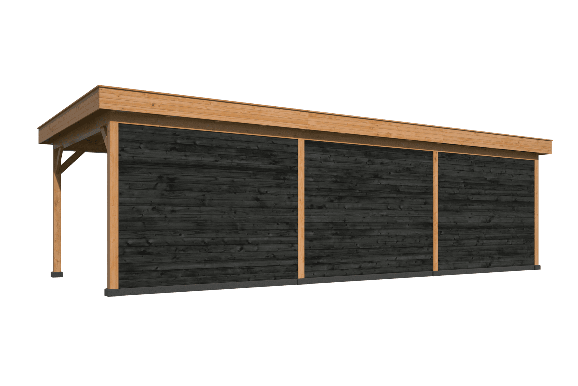 De overkapping is modulair en kan gespiegeld opgebouwd worden, zodat hij naadloos aansluit bij jouw tuinindeling. Met 8 stevige staanders (14,5 x 14,5 cm) en Zweeds rabat wandplanken is er volop ruimte en mogelijkheden voor een comfortabele, beschutte buitenruimte.