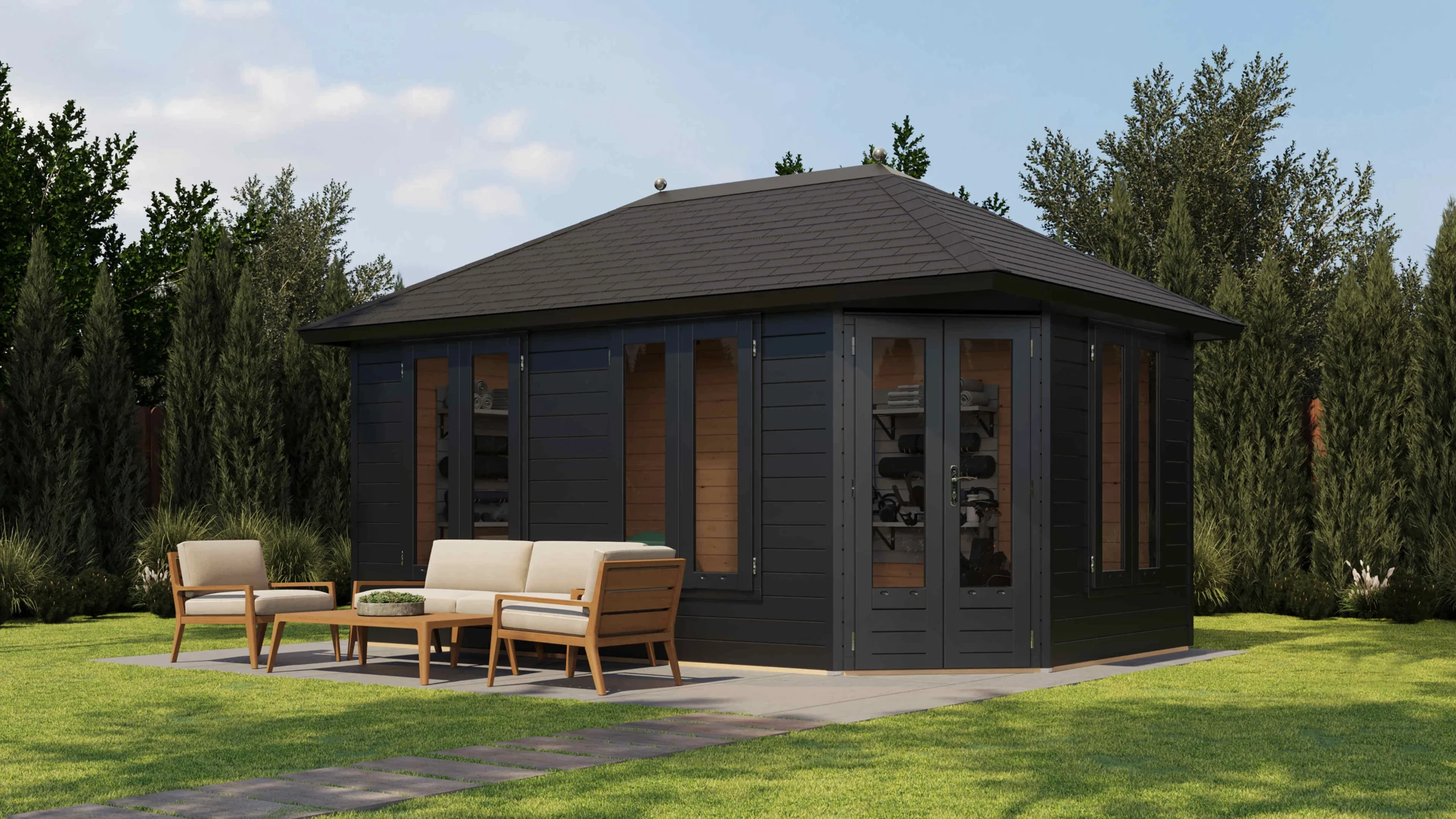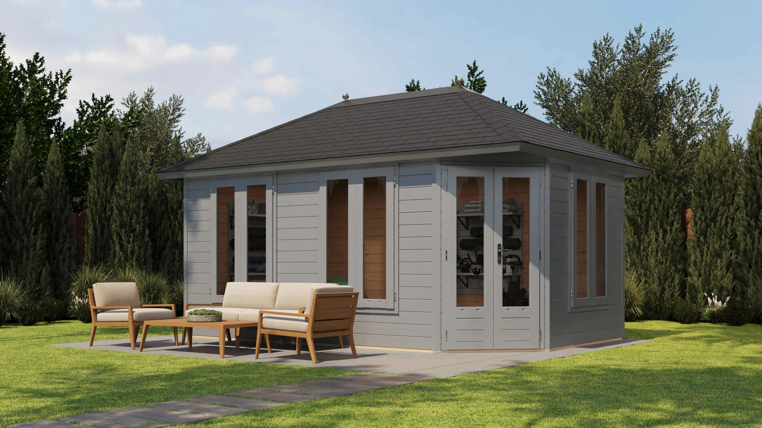Prima Tuinhuis Utrecht 480×300 cm – Piramidedak – 44 mm – Onbehandeld – Exclusief SHINGLESPrima Tuinhuis Utrecht 480×300 cm – Piramidedak – 44 mm – Onbehandeld – Exclusief SHINGLES