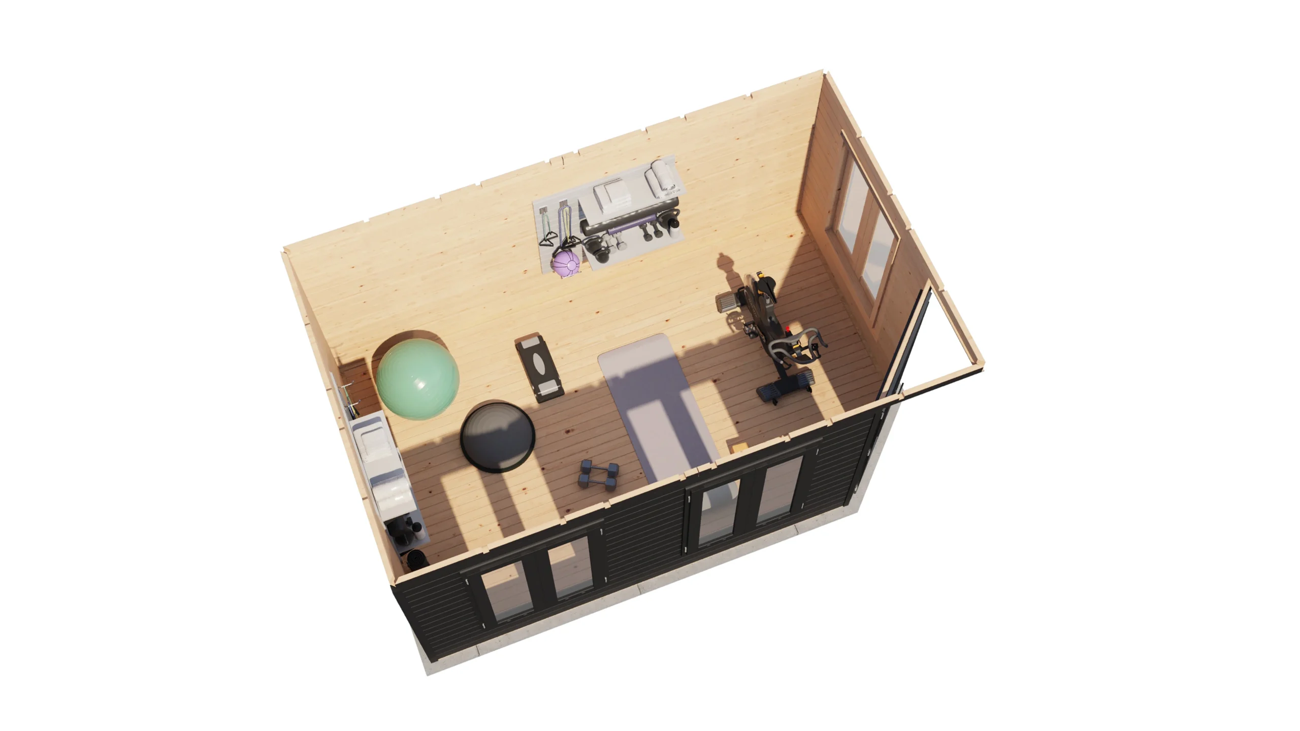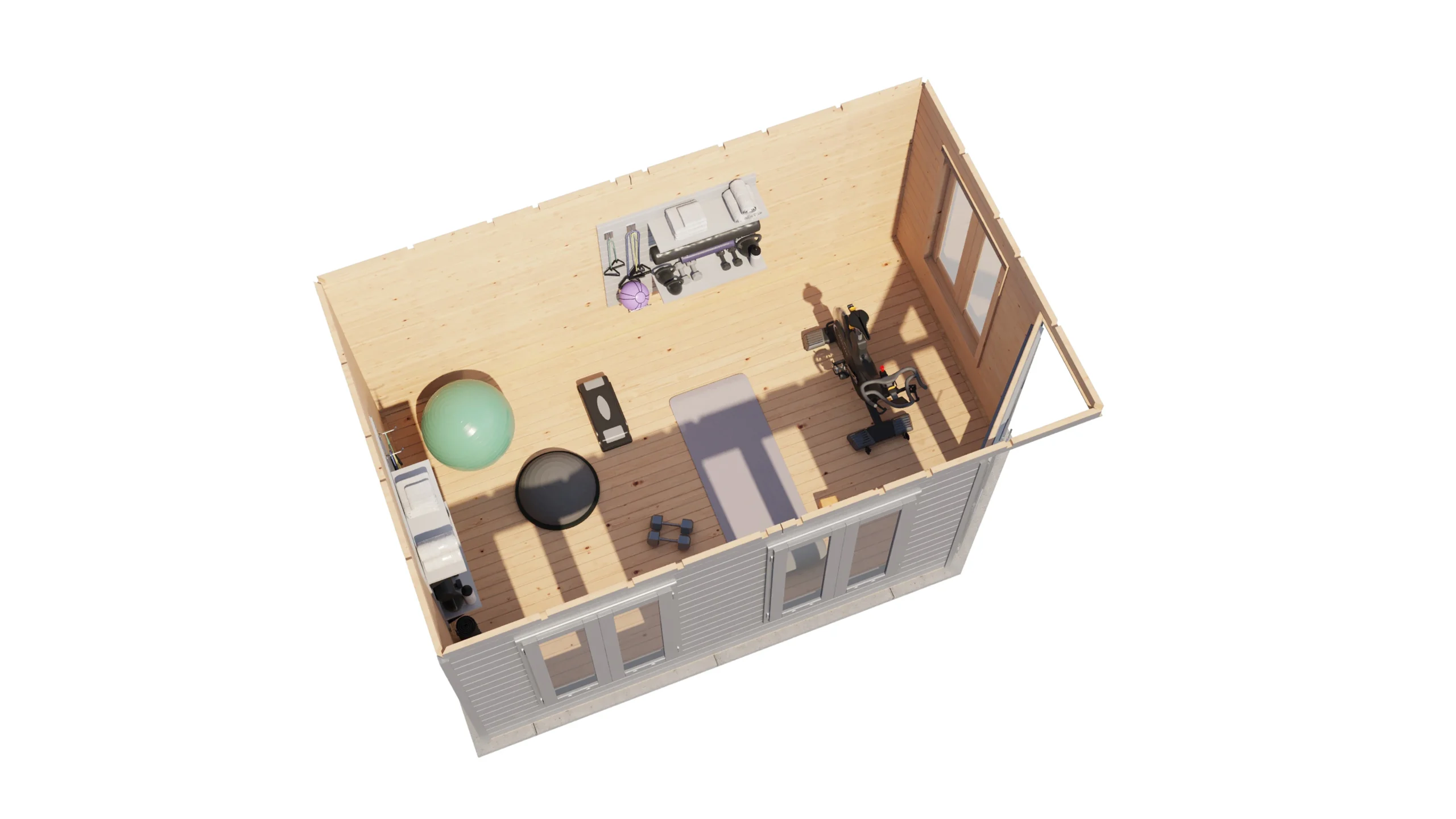 Het tuinhuis wordt onbehandeld geleverd, zodat je zelf de gewenste afwerking kunt kiezen. De 18 mm dakplanken met veer en groef zorgen voor een solide dakconstructie. Het tuinhuis is voorzien van een dubbele deur en drie dubbele ramen met dubbelglas, waardoor het toegankelijk, licht en ventilatief is.